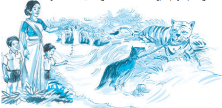 लेकिन कहानी में मोड़ तब आता है जब एक धूर्त सियार बाघ के डर को देखकर उसका मजाक उड़ाता है। सियार बाघ से पूछता है—“तुम किस डर से भागे?” बाघ बताता है कि उसने उस मानुषी को अपने पुत्रों को थप्पड़ मारते हुए देखा, जो एक-एक करके बाघ खाने के लिए झगड़ रहे थे। सियार उसके डर को हास्यास्पद मानकर उसे उकसाता है कि वह फिर से उस महिला के सामने जाए। सियार स्वयं विश्वास करता है कि वह केवल धूर्त है, कोई बाघ मारने वाली नहीं। अतः वह बाघ को कहता है कि यदि वह महिला उसे सामने देखकर भी नहीं डरती, तो बाघ सियार को मार डाले। बाघ सियार को गले में बाँधकर फिर से जंगल की ओर जाता है।