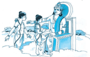 👉 राम लव और कुश को अपनी गोद तथा सिंहासन पर बैठाने के लिए कहते हैं।