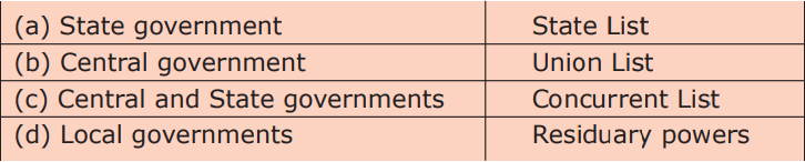 (d) Local governments – Residuary powers is NOT correctly matched.
