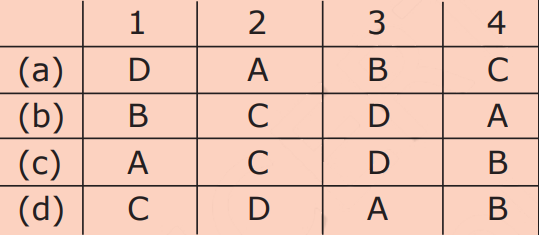 Correct option = (c) 1–A, 2–C, 3–D, 4–B