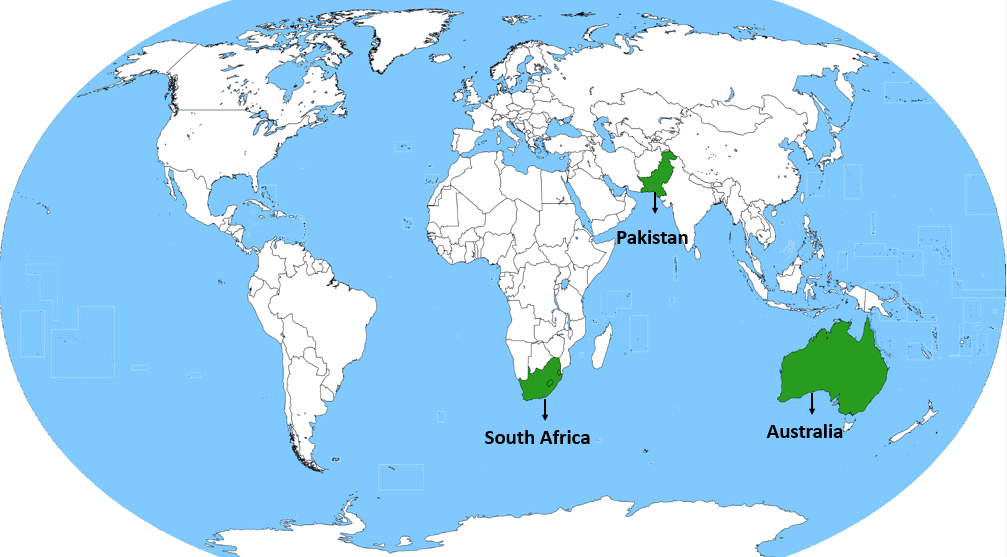 2. Identify and shade three federal countries (other than India) on a blank outline political map of the world.