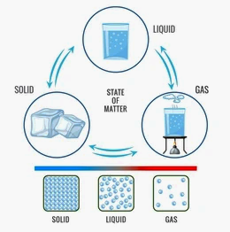 जब बर्फ → जल → जल वाष्प में परिवर्तन होता है, तब कणों की व्यवस्था इस प्रकार बदलती है: