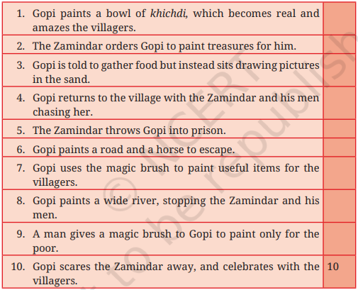 - Gopi uses the magic brush to paint useful items for the villagers. (7)
