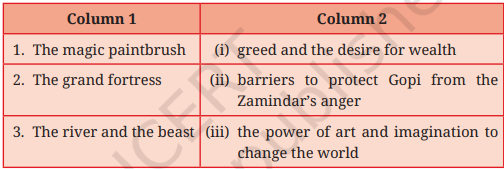 | 3. The river and the beast | (ii) barriers to protect Gopi from the Zamindar’s anger |