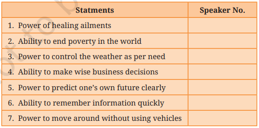 Speaker (ii) : I think having the power to learn instantly would be amazing! Exams would be easy, and I’d have more time for activities I enjoy, like playing cricket. If I could remember everything,itwouldmakelifesomucheasier!