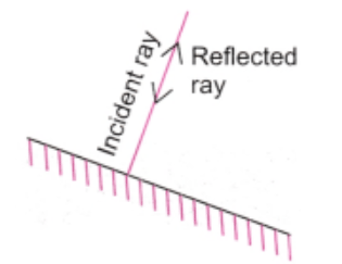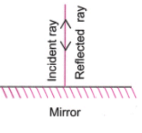 Angle of incidence = Angle of reflection: In reflection, the angle of the reflected light is always equal to the angle of the incident light. Since the light is hitting the mirror normally (at a 0° angle), the reflected light will also be at a 0° angle.