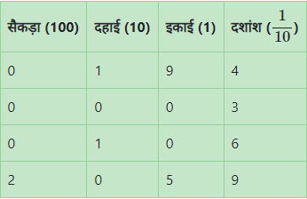 Q2. निम्न दशमलव संख्याओं को स्थानीय मान सारणी में लिखिए :