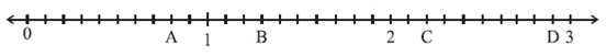 प्रश्न 9: दी हुई संख्या रेखा पर स्थित A, B, C, D बिन्दुओं के लिए दशमलव संख्या लिखिए :