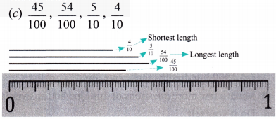 (Q.) Arrange the following lengths in increasing order: 4\(\frac{1}{10}\), \(\frac{4}{10}\), \(\frac{41}{10}\), 41\(\frac{1}{10}\)