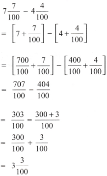 (d) 7\(\frac{7}{100}\) – 4\(\frac{4}{100}\)