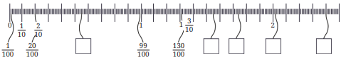 Observe the figure below. Notice the markings and the corresponding lengths written in the boxes when measured from 0. Fill the lengths in the empty boxes.