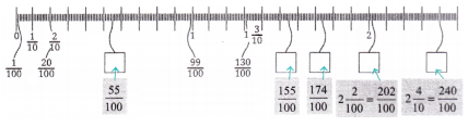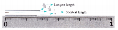 Length = \(\frac{5}{10}\) + \(\frac{5}{100}\)