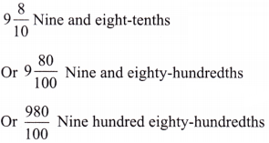90 hundredths = \(\frac{90}{100}\) = 0.001