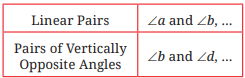Pairs of Vertically Opposite Angles (angles directly opposite each other):