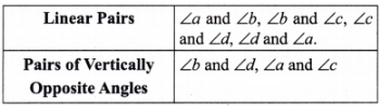 Q. List all the linear pairs and vertically opposite angles you observe in Fig. 5.3: