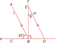 We have ∠ABC = 67°, ∠DBE = 90° and ∠BED = a.