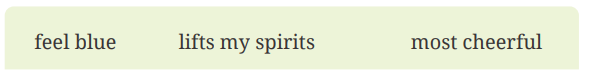 Negative emotions (sadness): feel blue