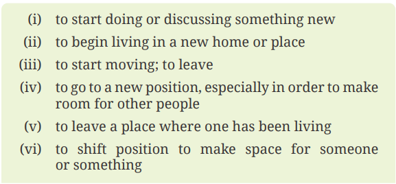 | 6 | The bus moved off as soon as all the passengers were seated. | (iii) to start moving; to leave |