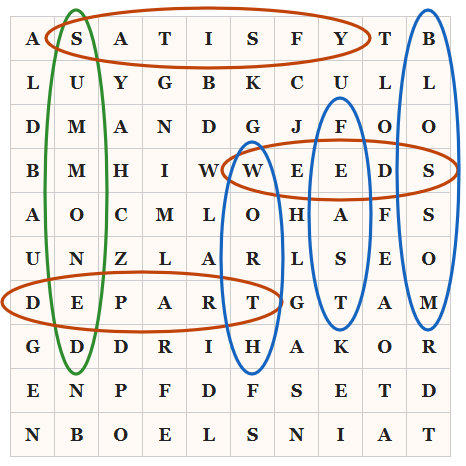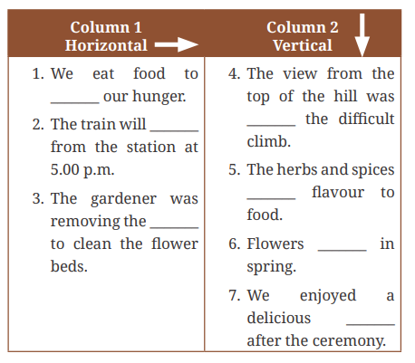 II. Use the given sentences as clues to Find words from the grid and Fill the blanks. One example has been done for you.