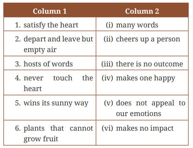 Q I. The poet has used some figurative phrases. Match the phrases in Column 1 with their correct meanings in Column 2. Use each phrase in a sentence of your own.