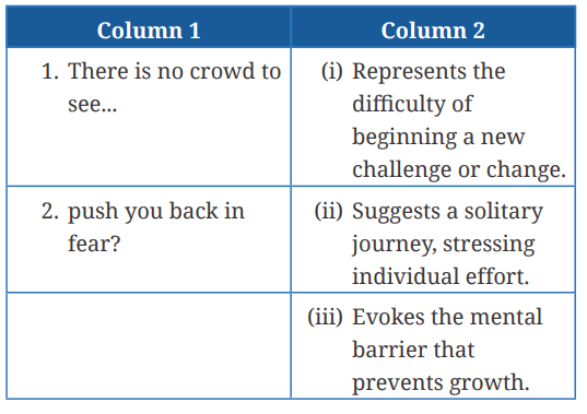 | 1. There is no crowd to see… | (ii) Suggests a solitary journey, stressing individual effort. |
