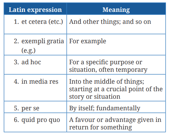 There are other Latin terms commonly used in English. Read a few given below along with their meanings.