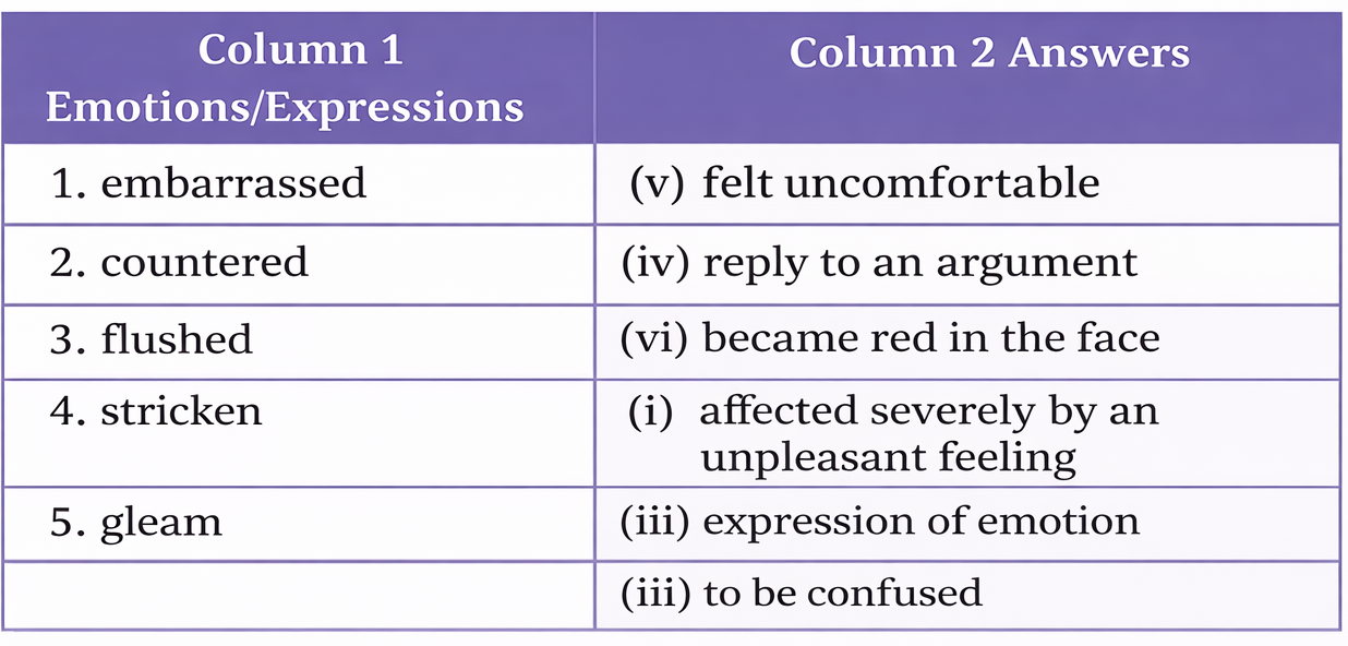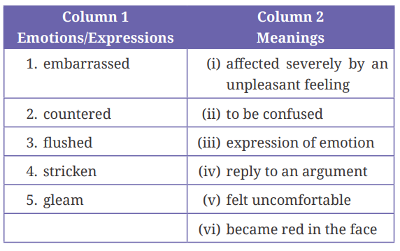 IV Match the emotions/expressions in Column 1 with their meanings in Column 2. One meaning is extra.