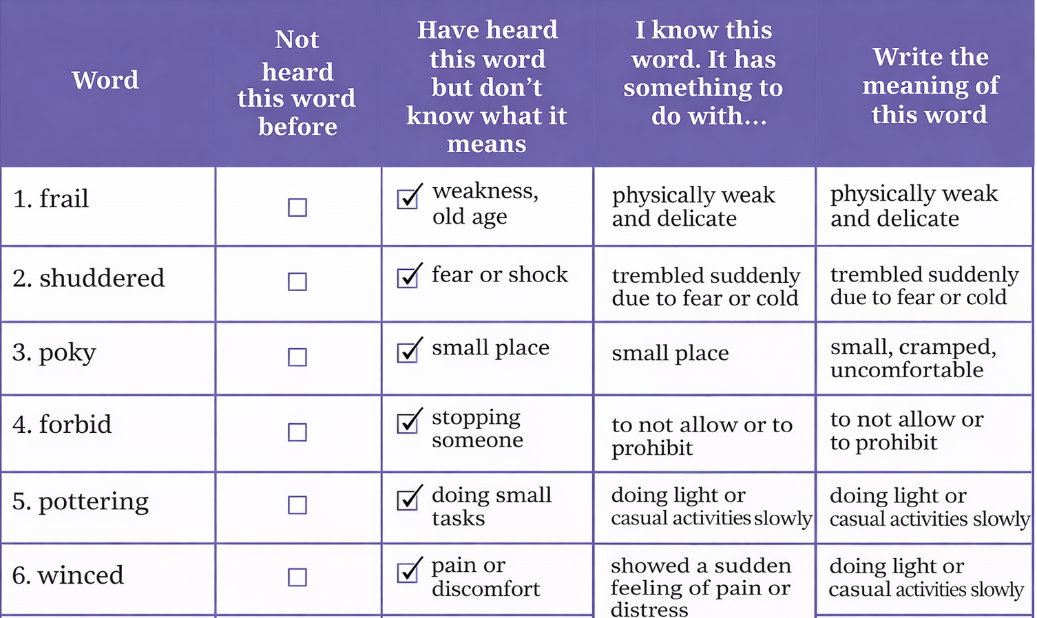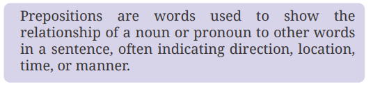 V. Read the highlighted words in the following phrases from the story. Now, revisit the story and underline the prepositions.