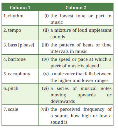 Now, on the next page, match the meanings of other music-related words in Column 1 with their meanings in Column 2.