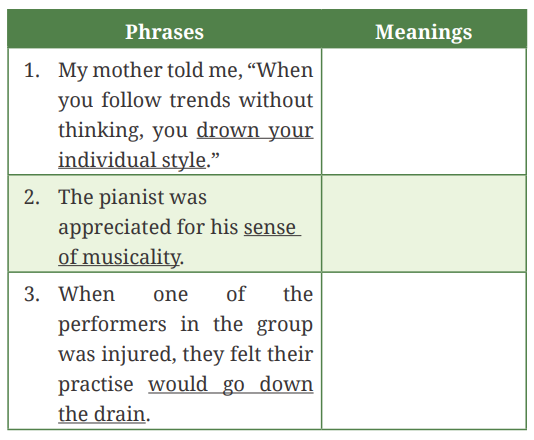 IV. Write the meanings of the underlined phrases based on your understanding of the usage in sentences.