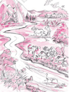 (__________ से चूमे हुए सुंदर कुंज में।)