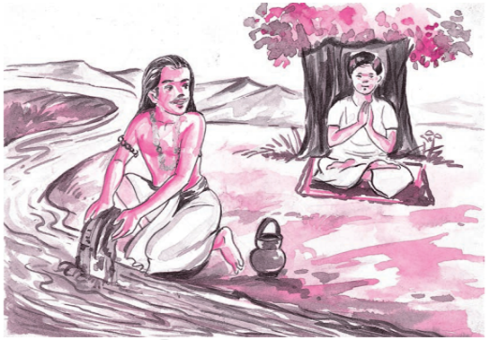 हिन्दी सारांश: यह अध्याय संस्कृत कक्षा ९ का सातवाँ पाठ “सिकतासेतुः” है, जो सोमदेव के “कथासरित्सागर” के सातवें अध्याय पर आधारित है। इसमें तपोदत्त नामक एक युवा का वर्णन है, जो तपस्या द्वारा विद्या प्राप्त करने का प्रयास करता है। बचपन में पिता के कष्टों के कारण उसने विद्या नहीं पढ़ी, जिससे परिवार, मित्र और रिश्तेदारों द्वारा उसकी निंदा हुई। वह आत्मग्लानि में कहता है: “हा विधे! किम् इदं मया कृतम्?” और श्लोक कहता है कि विद्या के बिना व्यक्ति सभा या घर में रत्नहीन सर्प की तरह नहीं चमकता। अब वह तप से विद्या प्राप्त करने का संकल्प लेता है। नदी तट पर जल की आवाज सुनकर वह देखता है कि एक पुरुष (देवराज इन्द्र पुरुष वेश में) रेत से सेतु बनाने की कोशिश कर रहा है। तपोदत्त हँसते हुए कहता है कि राम ने पत्थरों से समुद्र पर सेतु बनाया, तुम रेत से बनाकर उनसे आगे निकलना चाहते हो। पुरुष जवाब देता है कि यदि तपोदत्त बिना पढ़ाई के तप से विद्या पा सकता है, तो वह रेत से सेतु बना सकता है। तपोदत्त को अपनी गलती समझ आती है कि विद्या तप से नहीं, गुरुकुल में अध्ययन से मिलती है। वह पुरुष को प्रणाम कर गुरुकुल जाता है। पाठ के अंत में अन्वय, अभ्यास प्रश्न जैसे एकपद उत्तर, पूर्ण वाक्य उत्तर, भिन्न पद चयन, सर्वनाम प्रयोग, कथन विश्लेषण, प्रश्न निर्माण, समास विग्रह, और वाक्य रचना दिए गए हैं, जो पाठ की समझ को मजबूत करते हैं। यह कथा उचित मार्ग और प्रयास के महत्व को दर्शाती है।