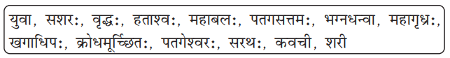 (ग) हतसारथि – हतसारथिः रावणः क्रोधेन मूर्च्छितः। (सारथि मारा गया रावण क्रोध से मूर्च्छित हुआ।)