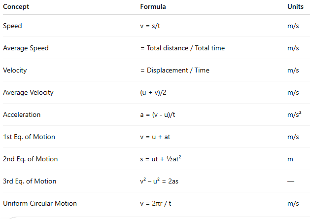 | (ii) | s = ut + ½ at² | Distance covered in time t |