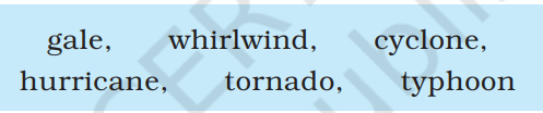 There are different names in different parts of the world for storms, depending on their nature. Can you match the names in the box with their descriptions below, and fill in the blanks? You may use a dictionary to help you.