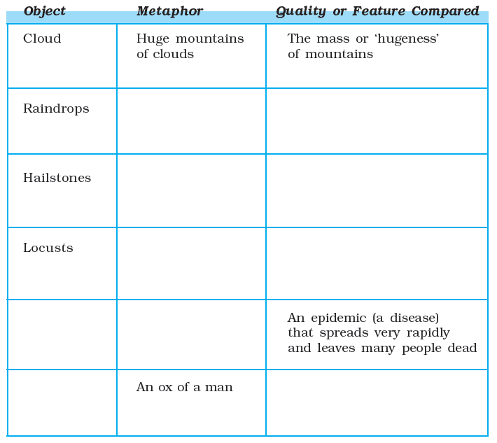In pairs, find metaphors from the story to complete the table below. Try to say what qualities are being compared. One has been done for you.