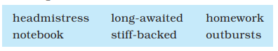 • nouns: headmistress, homework, notebook, outbursts