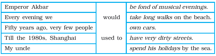 From the table below, make as many correct sentences as you can using would and/or used to, as appropriate. (Hint: First decide whether the words in italics show an action, or a state or situation, in the past.)