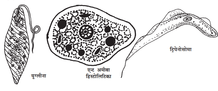 (18) अमीबा, पैरामीशियम तथा युग्लीना की कोशिकाओं के नामांकित चित्र बनाइए।