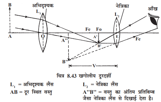 (17) खगोलीय दूरदर्शी किसे कहते हैं? इसकी कार्यविधि का किरण पथ बनाकर वर्णन कीजिए।