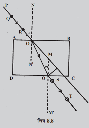 (7) अभिलंब और अपवर्तित किरण के बीच के कोण को अपवर्तन कोण कहते हैं।